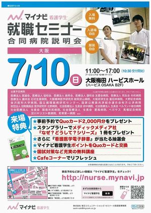・SMS看護就職フェア 7/10(日)11時~17時 場所 梅田スカイホール