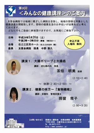 | ◆第9回『みんなの健康講座』のご案内(終了しました) |